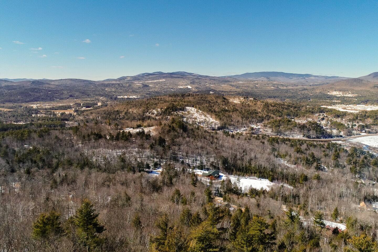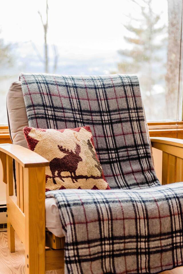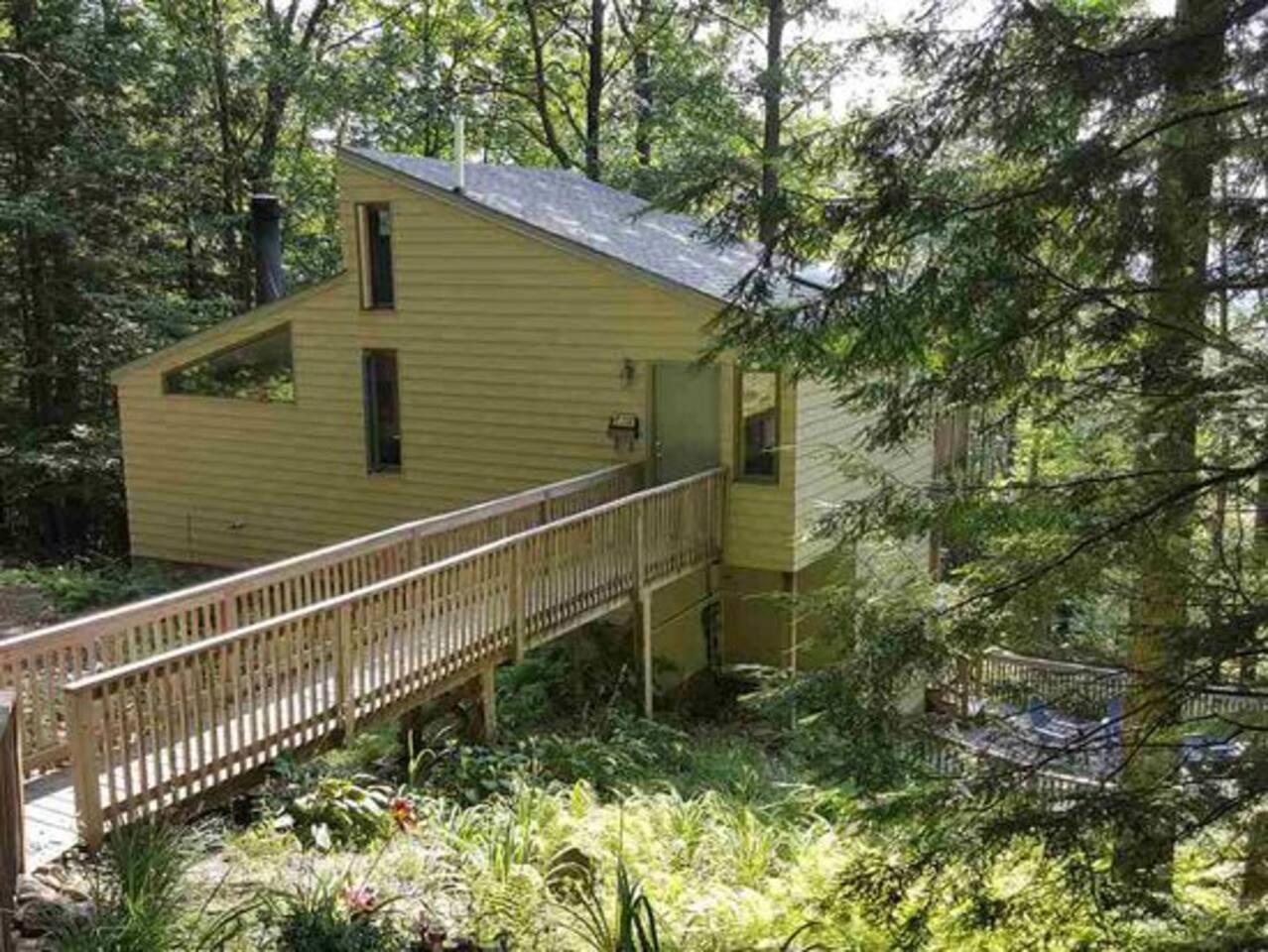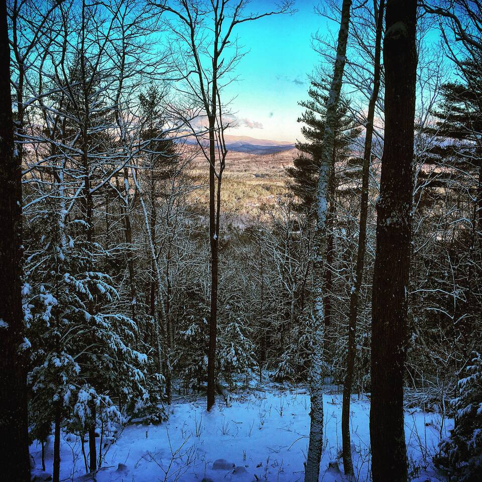 Cabin in the woods with amazing mountain views. Situated on 2.5 acres and surrounded on 3 sides with 30 additional steep wooded acres; peace and privacy. NOTE: winter driving will require snow tires or 4wheel drive as the house is on an incline road. Skiing, Snowboarding: - 25 minute drive to Loon Mountain - 25 minute drive to Waterville Valley - 25 minute drive to Tenney Mountain Resort Cabin professionally cleaned between stays w/extra attn on high touch areas.