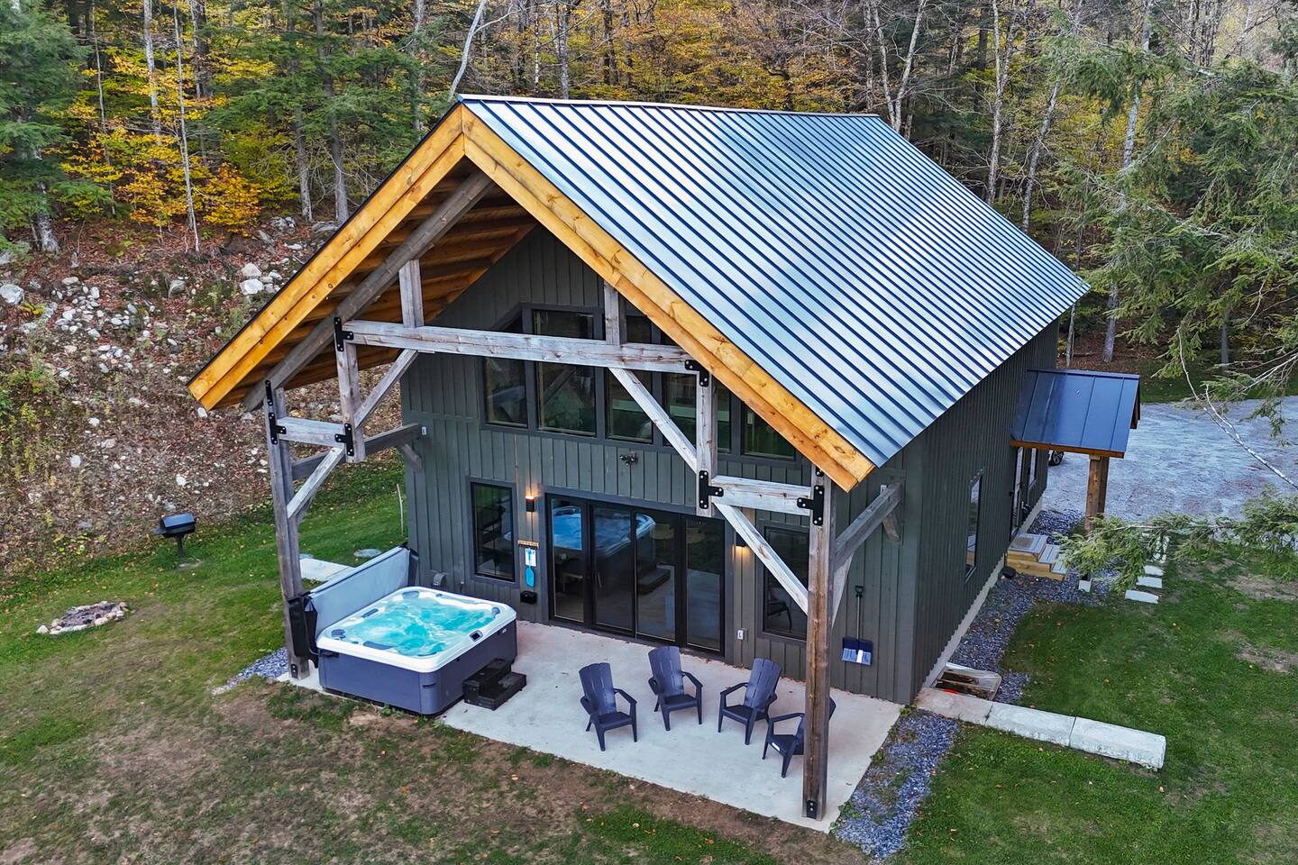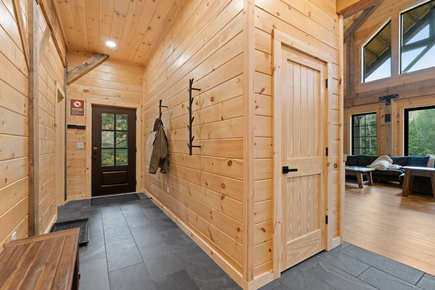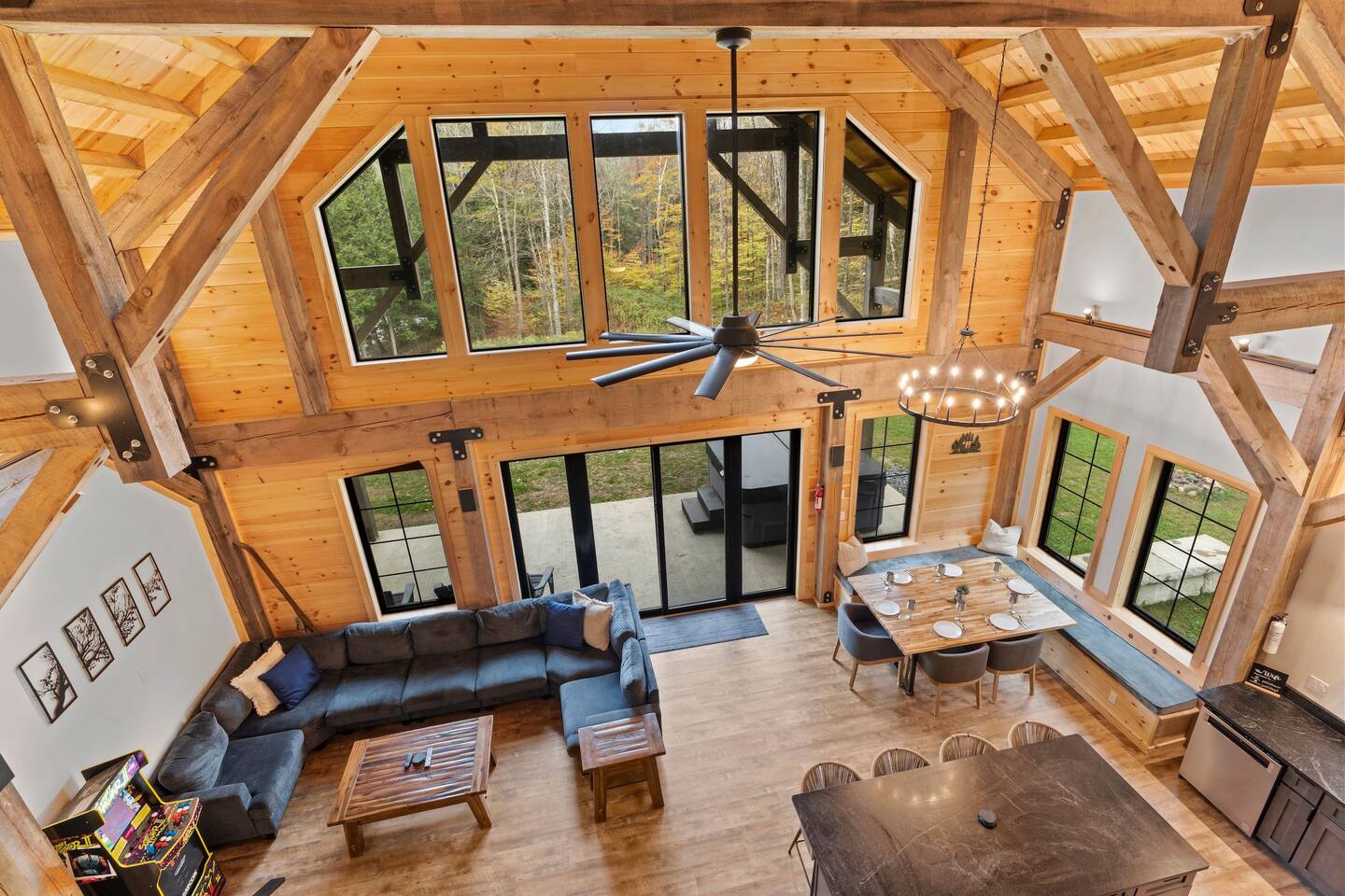 After 5 yrs of construction our 4 bedroom, 2.5 bathroom purpose built retreat is finally available to guests and we are so excited to share it. Be one of the firsts to experience everything the property has to offer including: INSIDE: This post and beam cabin brings rustic yet refined aesthetics that evoke a strong sense of scale from its massive cross timbers. The main entertainment space offers 30+ ft ceiling, 75" Micro LED TV with excellent viewing angles, and an Arcade to challenge your friends. Seating options abound in the main entertainment space including large island, built in dining area seating, and a large U-shape sectional. There is also a realistic electric fireplace (primarily for ambiance) and radiant floor heating throughout the main floor. The four bedrooms are split between: - Three King sized memory foam beds for the adults - One extra large child's room with sturdy twin bunk bed that can support adults if needed along with a queen pull out bed for the times children need someone to share the space with them for a while as they fall to sleep. The kitchen is fully stocked with a Keurig machine and provided coffee. Pans, pots, baking sheets, etc. Any chef would enjoy. OUTSIDE: Experience the forest, pond, walking trails, and mountain views. Our covered patio is a perfect retreat rain or shine with Adirondack chairs and new 8 person jetted hot tub. The large private pond is accessible via trails down to the waters edge where wildlife such as beavers, woodchucks, deer, and more visit . THE SURROUNDING AREA: ~ 10 minutes to Okemo Ski Resort ~ 15 minutes to Killington Ski Resort (Skyship Gondola) ~ 15 Miles to the quaint shops and cafe’s of Woodstock, VT ~ 10 minutes to Ludlow, VT ~ 5 minutes to sands of Echo Lake Beach (Camp Plymouth State Park) ~ 15 minute to Fox Run Golf Club ~ 10 minutes to President Calvin Coolidge historical site village ~ 25 min to Pico Mountain ~ 50 min to Stratton ~ 1 hr to Mt. Snow ~ 1 hr 20 min to Sugarbush and Mad River Glen The Legal Disclosure: By booking this property your agreeing to the below: Assumption of Risk and Release of Liability – Pond Access The property includes access to a natural or man-made pond, which is not supervised, monitored, or secured. By choosing to stay at the property, all guests, occupants, and visitors (“Guests”) acknowledge and accept the inherent risks associated with use of or proximity to the pond, including but not limited to illness, boating, swimming, slipping, drowning, injury, illness, or death. By entering and/or using the pond or surrounding area, Guests do so at their own risk. The Host and property owner shall not be held liable for any injuries, accidents, illnesses, loss of life, or damages of any kind that may occur as a result of use of or proximity to the pond. Guests expressly assume all risks, known and unknown, related to the pond, and waive any and all claims against the Host, property owner, and their agents, employees, successors, and assigns arising from or related to the pond. This includes claims based on negligence or the condition of the property. Children and non-swimmers must be supervised at all times. Use of the pond for swimming or watersport is strictly at the discretion of the Guests, and is neither encouraged nor required. Also included in this is use of any related equipment or facilities such as docks, boats, equipment, or any other items that might be associated with the use of the pond. Also note: the onsite pond is not tested for water safety (i.e. harmful bacteria, algae, e-coli, etc). By booking or occupying the property, Guests acknowledge and agree to the terms of this Assumption of Risk and Release of Liability.