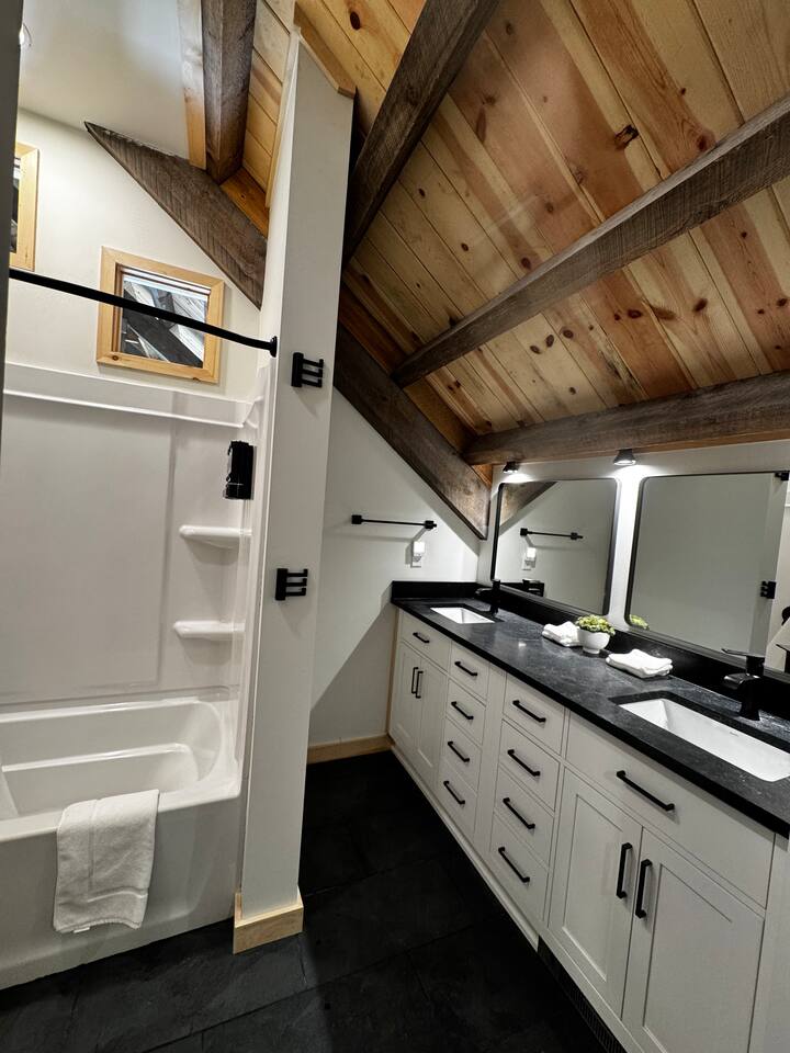 Private Pond | Post & Beam | Nature Retreat | Hot Tub Sleeps up to 8 Welcome to your peaceful escape in the woods. This custom-built, post-and-beam home sits on 5 wooded acres with private frontage on a tranquil 6+ acre pond—perfect for nature lovers, quiet seekers, and family or friend groups looking to unwind. Highlights: * 4 bedrooms | 2.5 baths * 3 King beds & 1 Twin Bunk. All memory foam mattresses * 30-ft ceilings, reclaimed beams * Fully equipped kitchen * 75” TV, arcade, board games